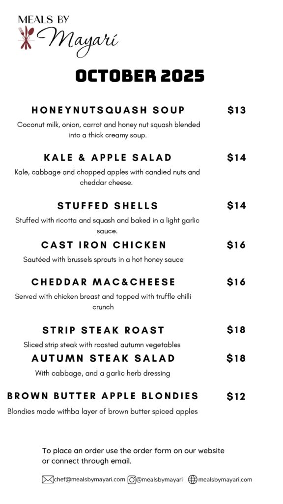 Fill out the form with your meal choices, delivery preference and off menu requests by 5PM on Monday